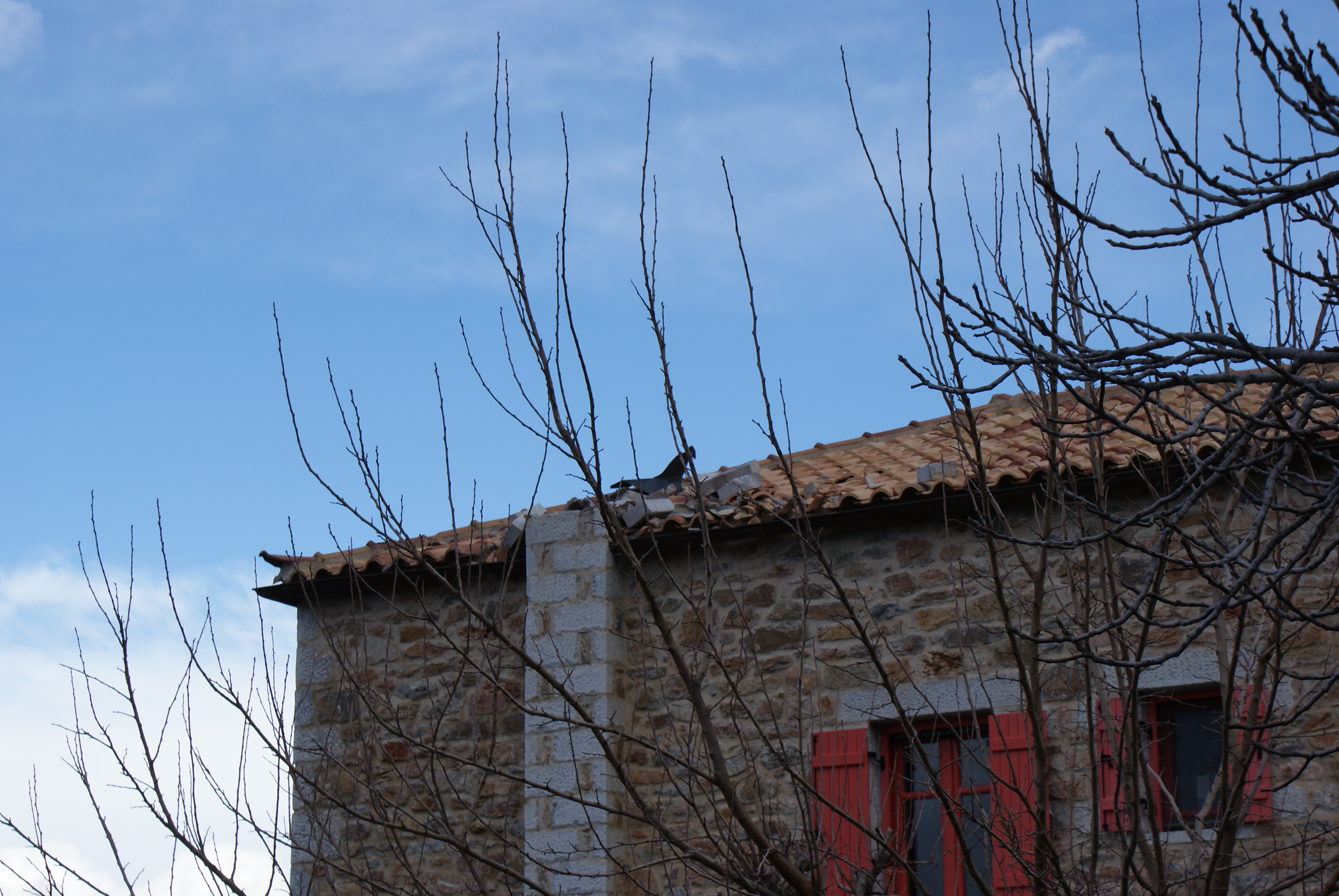 Iedereen die langs komt, staat met verbazing te kijken en de Grieken spreken allemaal over een “megalo Boem” (grote boem). Gelukkig zijn wij ongeschonden uit de strijd gekomen en de schade laten we snel maken. Als de electricien komt, wordt meteen een biksemafleider geplaatst.