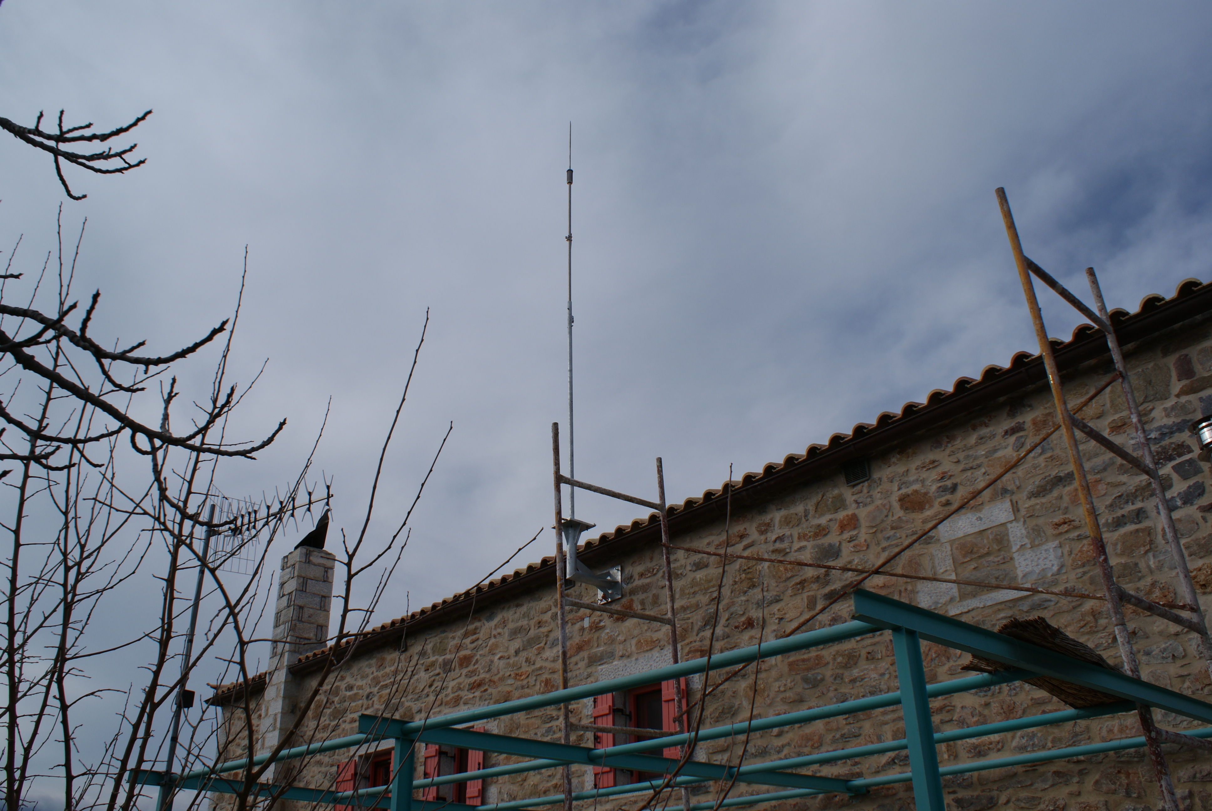 De bliksemafleider is geplaatst, het lijkt wel of we een zendmast hebben. Geeft een veiliger gevoel.