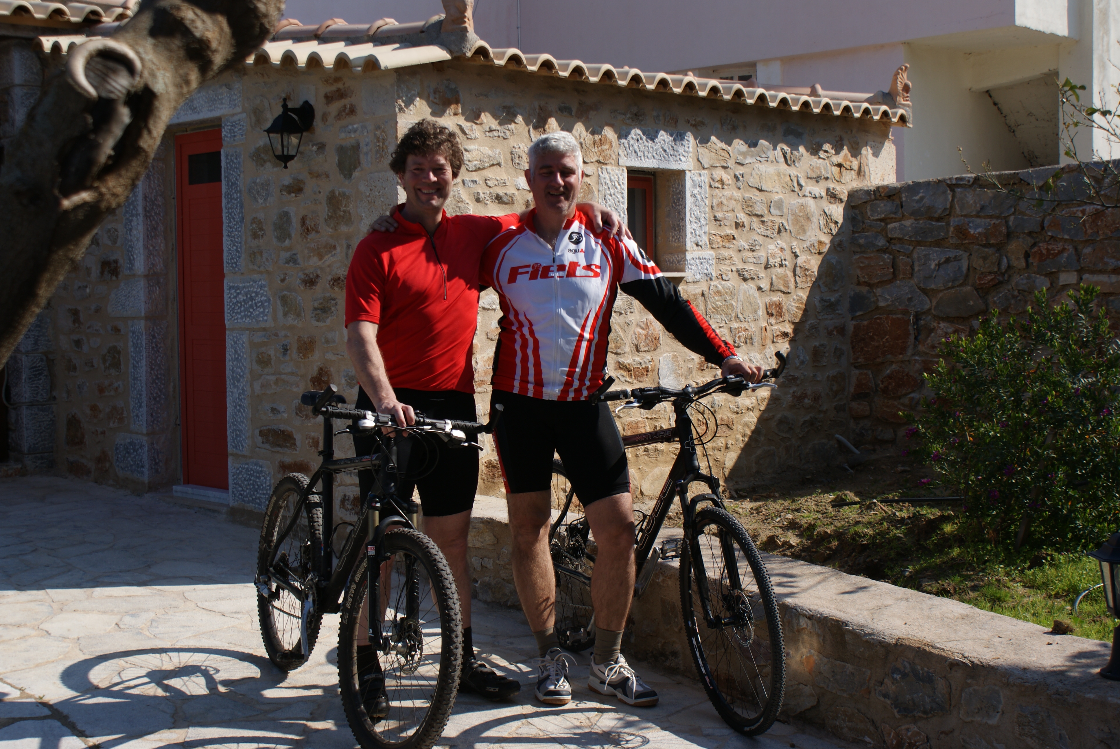 Ook hebben ze gefietst, vanaf huis tot aan de olijfoliefabriek (naar beneden) en weer omhoog. 22 minuten voor een afstand van 3,2 km, een goeie training voor de Mont Ventoux die Mike (de dwaas) van de zomer wil gaan fietsen.