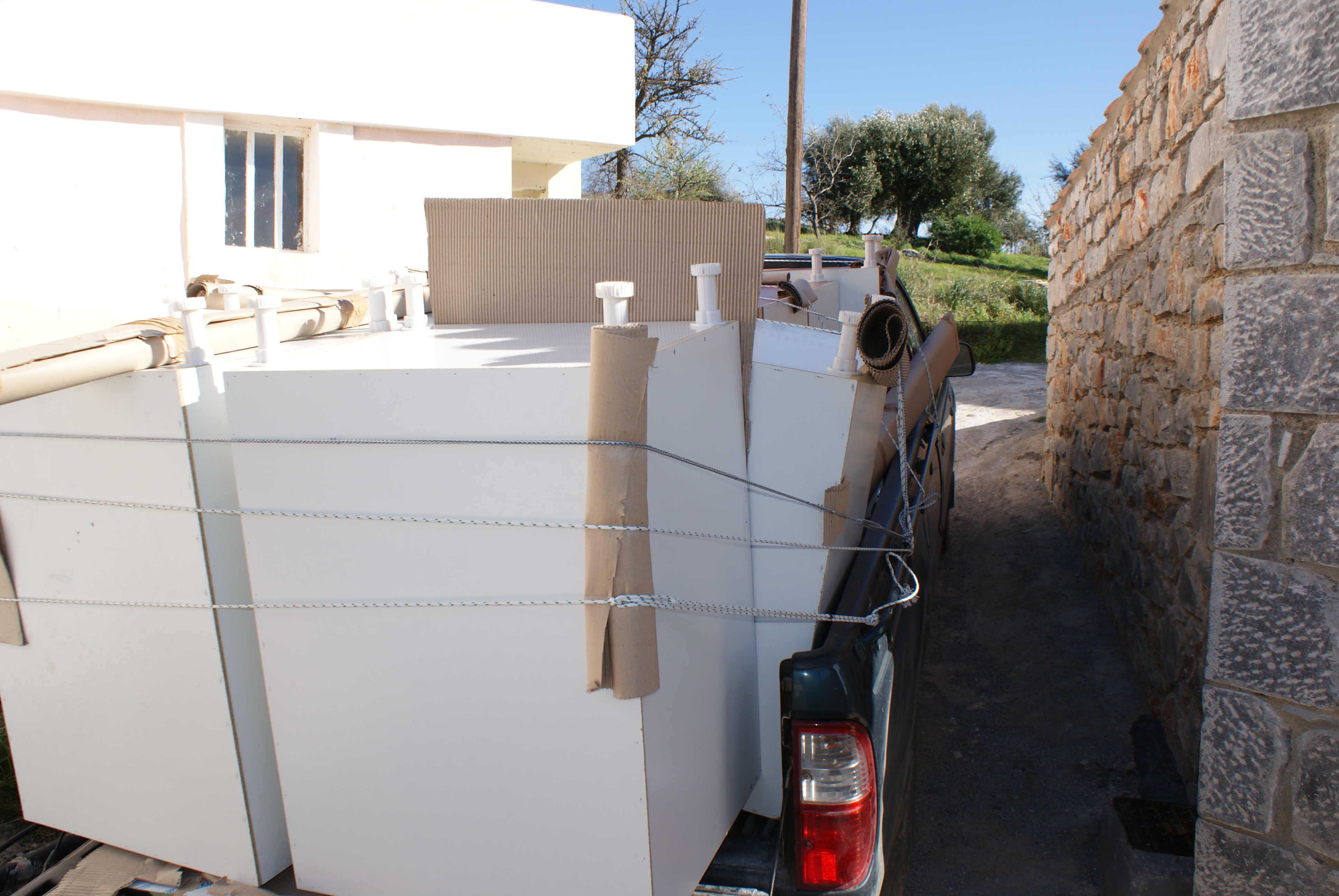 Eigenlijk is het hier stilstaan of hollen. De keuken, die in november 2008 was besteld, zou eerst in januari en toen begin maart komen. Uiteindelijk heeft een andere fabrikant geleverd. Uiteraard eerst de oude keuken demonteren (met behulp van Odette en Noulis, die die ook hebben meegenomen)