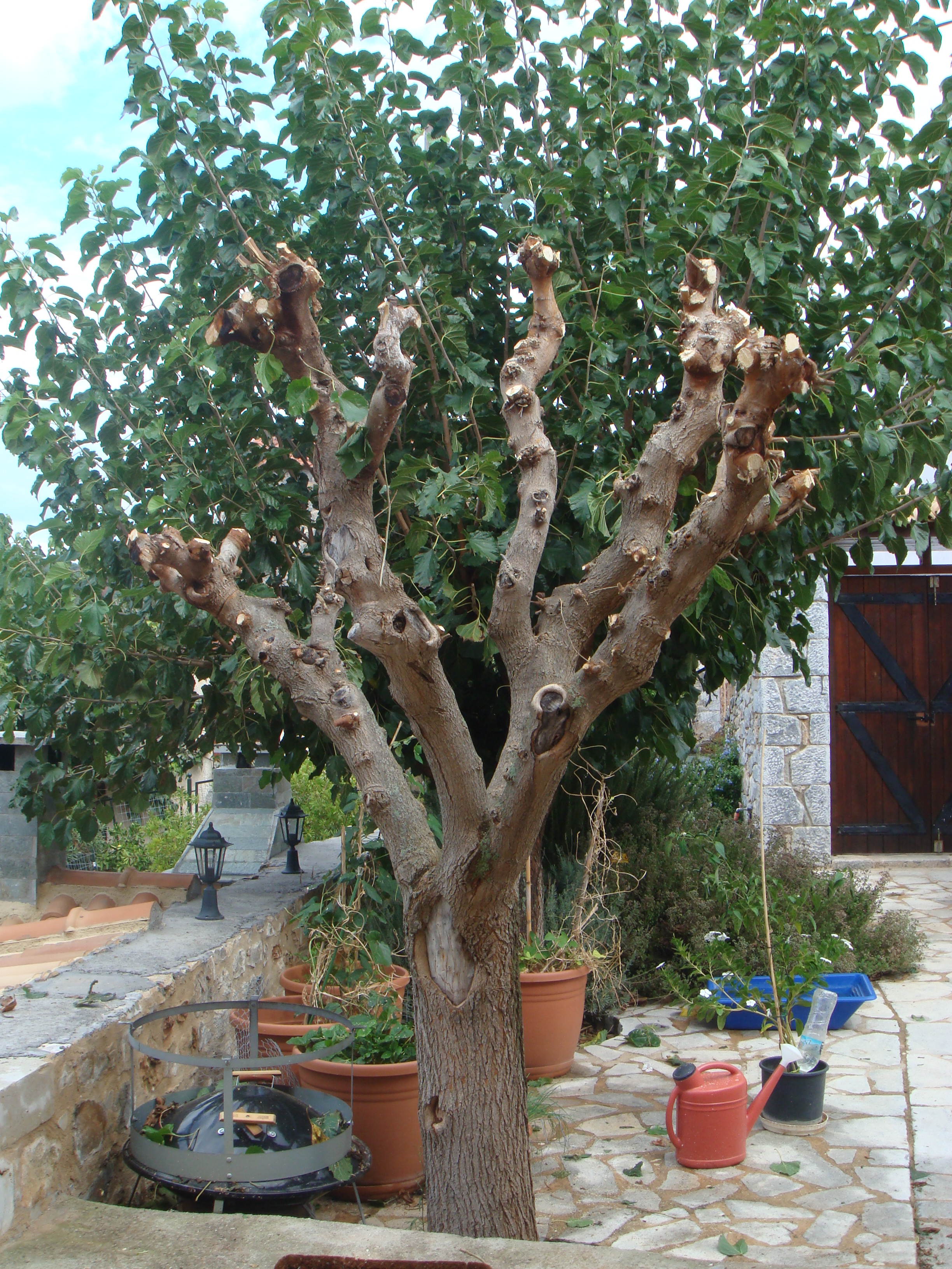 Kyria Martina is ook weer terug van haar badenkuur, ze praat weer 100 in het uur. De moerbeibomen moeten nu gesnoeid worden, want dan lopen ze in het voorjaar eerder uit, aldus Martina. Dan moeten we dus ook aan de gang. De takken gaan voor een deel naar Mitsos (Kyrie Dimitri) voor zijn schapen. De helft is gedaan.