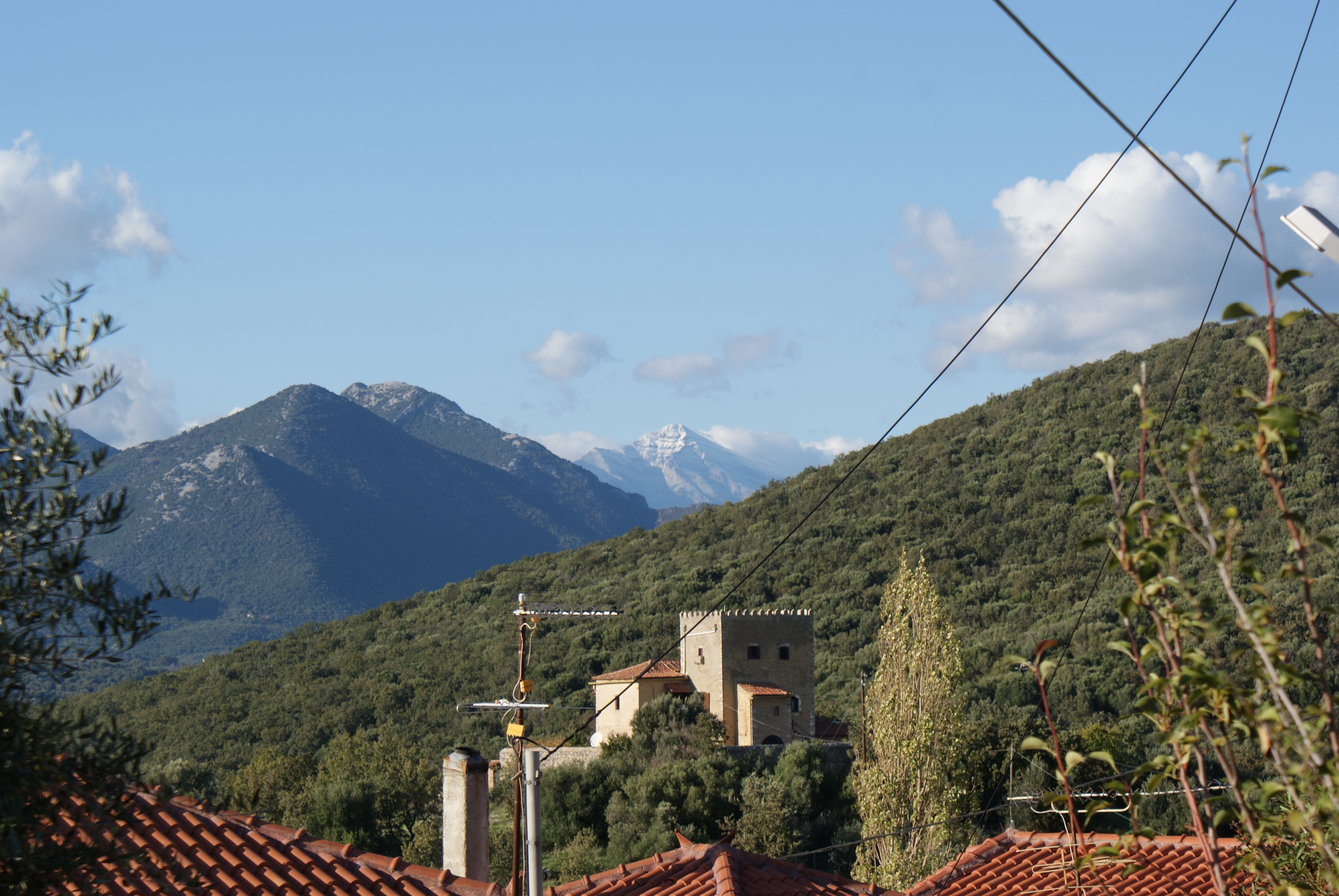 Op de top van de Taygetos ligt alweer sneeuw. De afgelopen weken heeft het geregeld hard geregend en toen donderdag 12 november eindelijk de top weer eens zichtbaar was, lag er sneeuw op. De winter is begonnen? Het weer is erg mooi, we kunnen ’s middags nog gewoon buiten biertje drinken (+/- 20 graden).