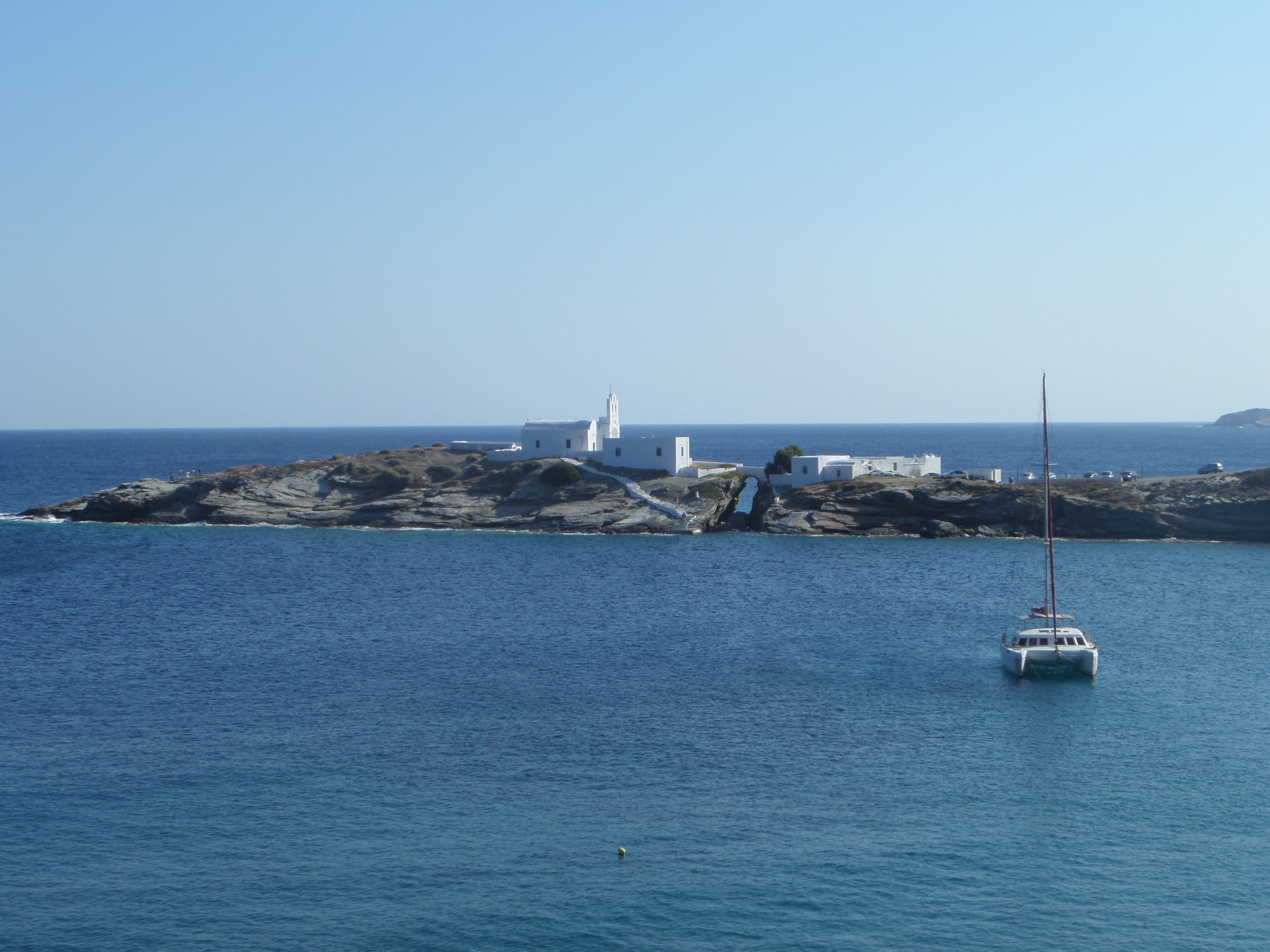 We arriveerden 13 september en het was er nog enorm druk, volstrekt tegen onze verwachtingen in. We bezoeken dit eiland vanaf 1990 geregeld. De verschillen tussen 1990 en 2014 zijn gigantisch. In 1990 waren we er samen met 5 andere toeristen, nu zullen er nog ongeveer 500 toeristen geweest zijn. Indertijd reden er 2 bussen, een van de haven naar Chora (het hoofddorp) en een van Chora naar Ano Meria (het hoger gelegen dorp). De totale wegafstand op het eiland is 12 kilometer. Inmiddels zijn er meerdere autoverhuurbedrijven, legio brommerverhuurbedrijven en 2 tankstations, terwijl de bussen (zeer moderne) ook nog gewoon rijden. In 1990 waren er 3 hotels in Chora, nu meer dan 30, waarvan veel met een zwembad.