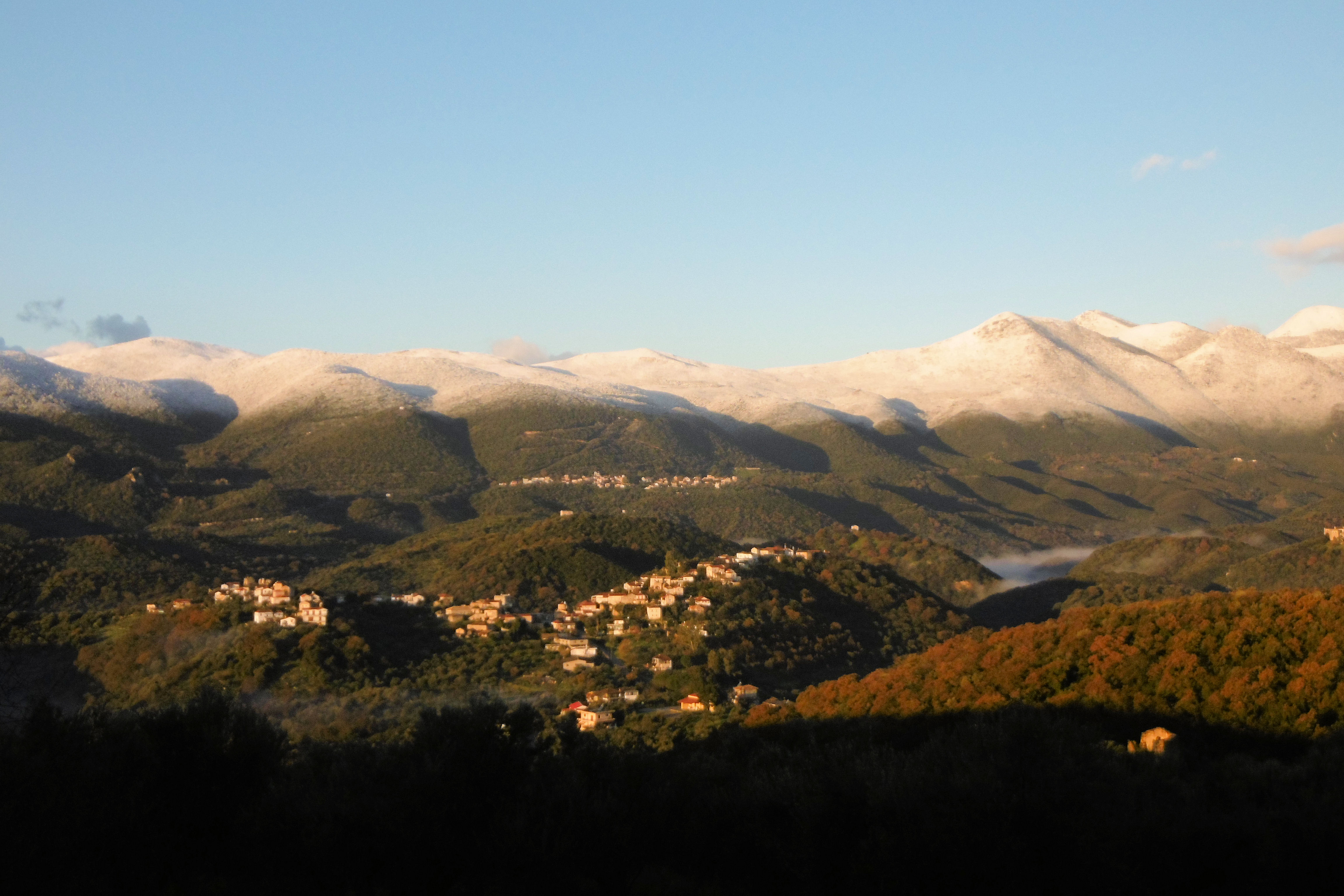Het weer is deze winter, tot dusver, een beetje anders. Het is nu al een aantal dagen echt koud, dat wil zeggen temperaturen ’s nachts dicht tegen het vriespunt en overdag ook veelal niet meer dan een graad of 8. Gelukkig hebben we sinds kort een terrasverwarmer, zodat we toch nog buiten kunnen zitten. Gisterenmiddag begon het ook nog te regenen, wat er uiteindelijk toe heeft geleid dat de bergtoppen wit zijn.