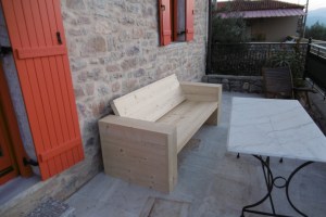 Van de buren, John & Petie, hebben we een zelfgemaakte buitenbank gekregen. Afgezien van dat we de bank erg mooi vinden, zit ie ook nog goed. De eerste dagen hebben we er al veel op gezeten, mede dankzij het meer dan lekkere weer (eind januari 18 tot 20 graden). We zijn momenteel de bank aan het schilderen om er langer plezier van te kunnen hebben.