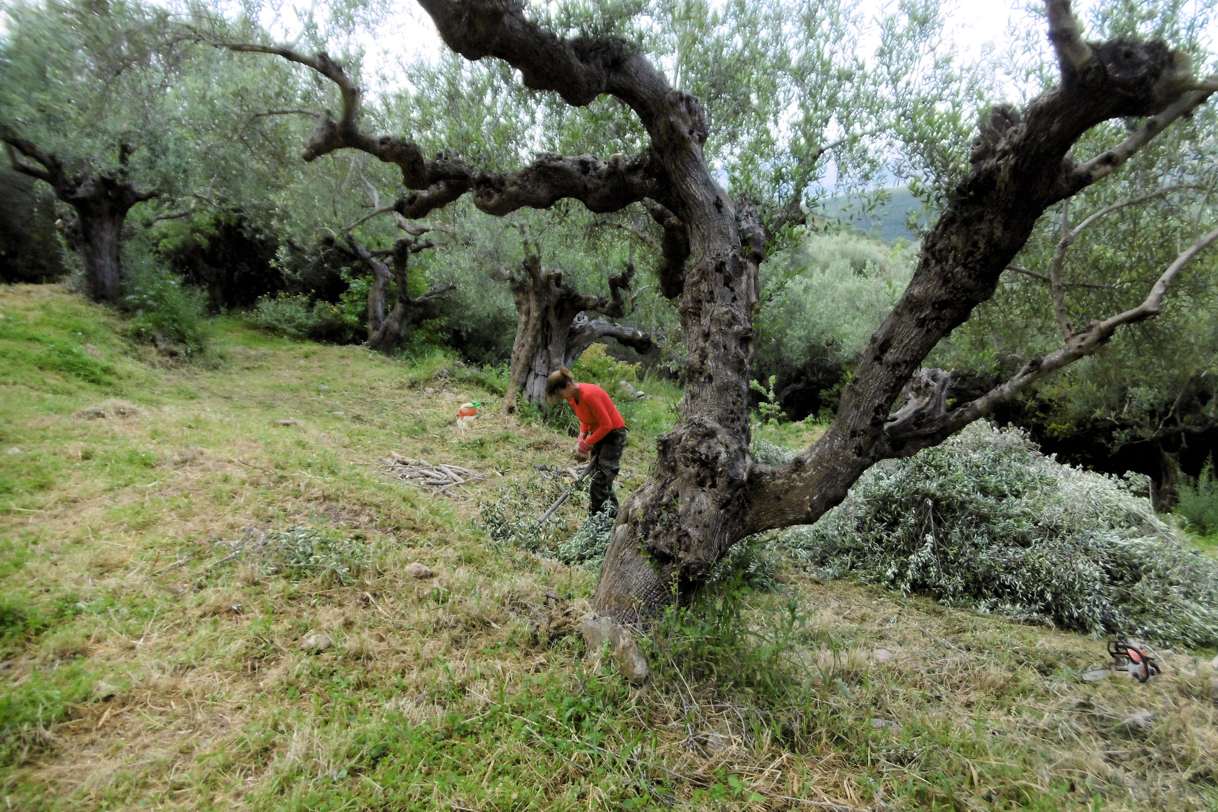 Het is nog maar enkele weken tot 1 mei, de dag waarop er niet meer buiten verbrand mag worden (maatregel tegen bosbrand). Aangezien we nog druk zijn met snoeien van de olijfbomen van het stukje van Tasoula moeten we nog opschieten om alles voor die datum gereed te krijgen. Vandaar dat we rond de Paasdagen in en rond de boomgaard bezig waren.