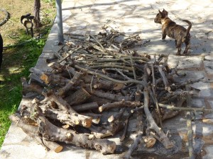 Er was geen tijd voor een groot gezelschap met een lam op het spit, omdat we de Paas ochtend zijn gestart bij het asiel. En een lam/geit op het spit kost in totaal meer dan 4 uur, dus dat ging niet wat betreft de tijdsplanning. Inmiddels (vanaf Goede Vrijdag) is het prachtig weer, dus lekker buiten eten.