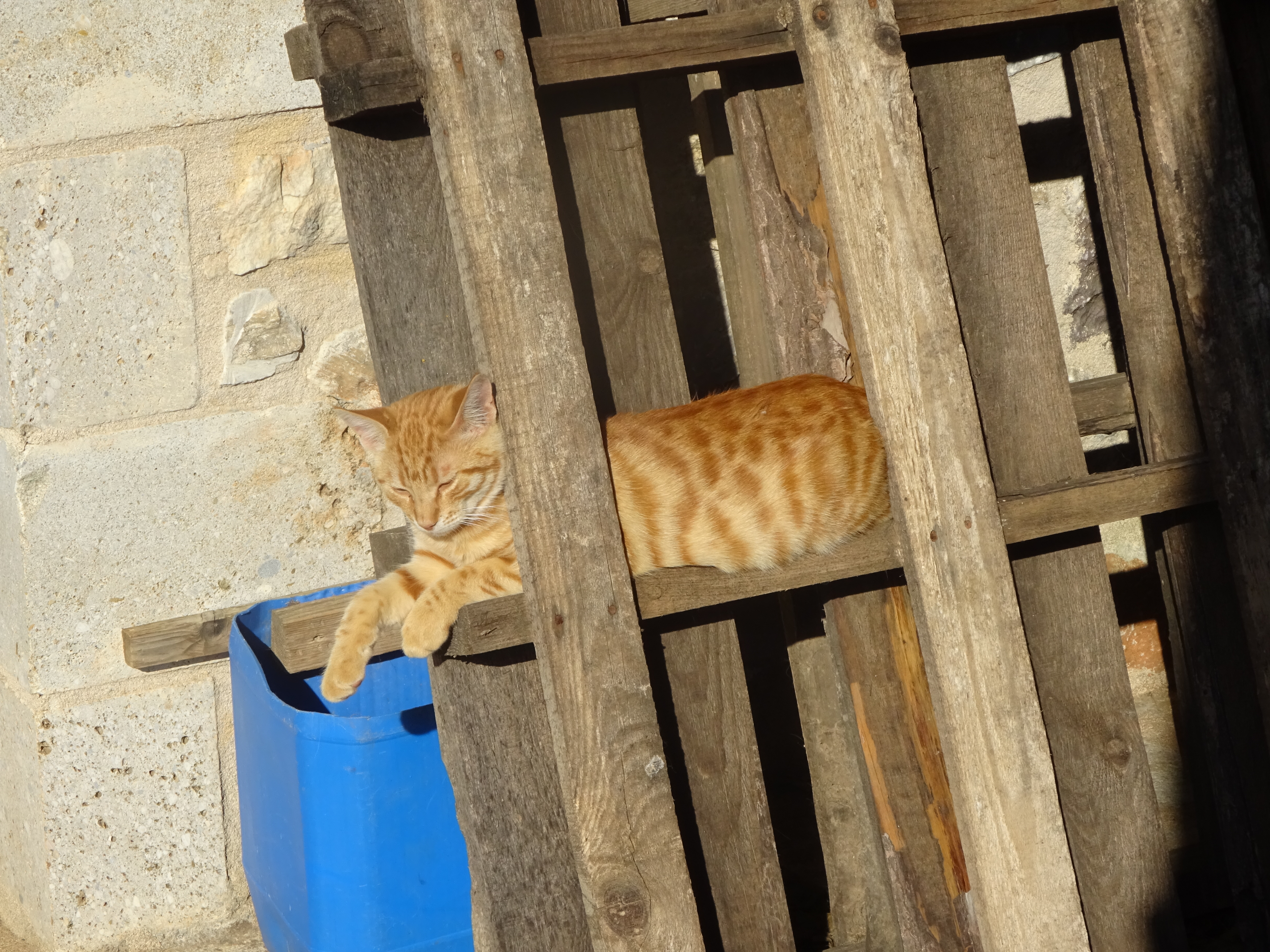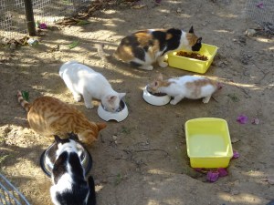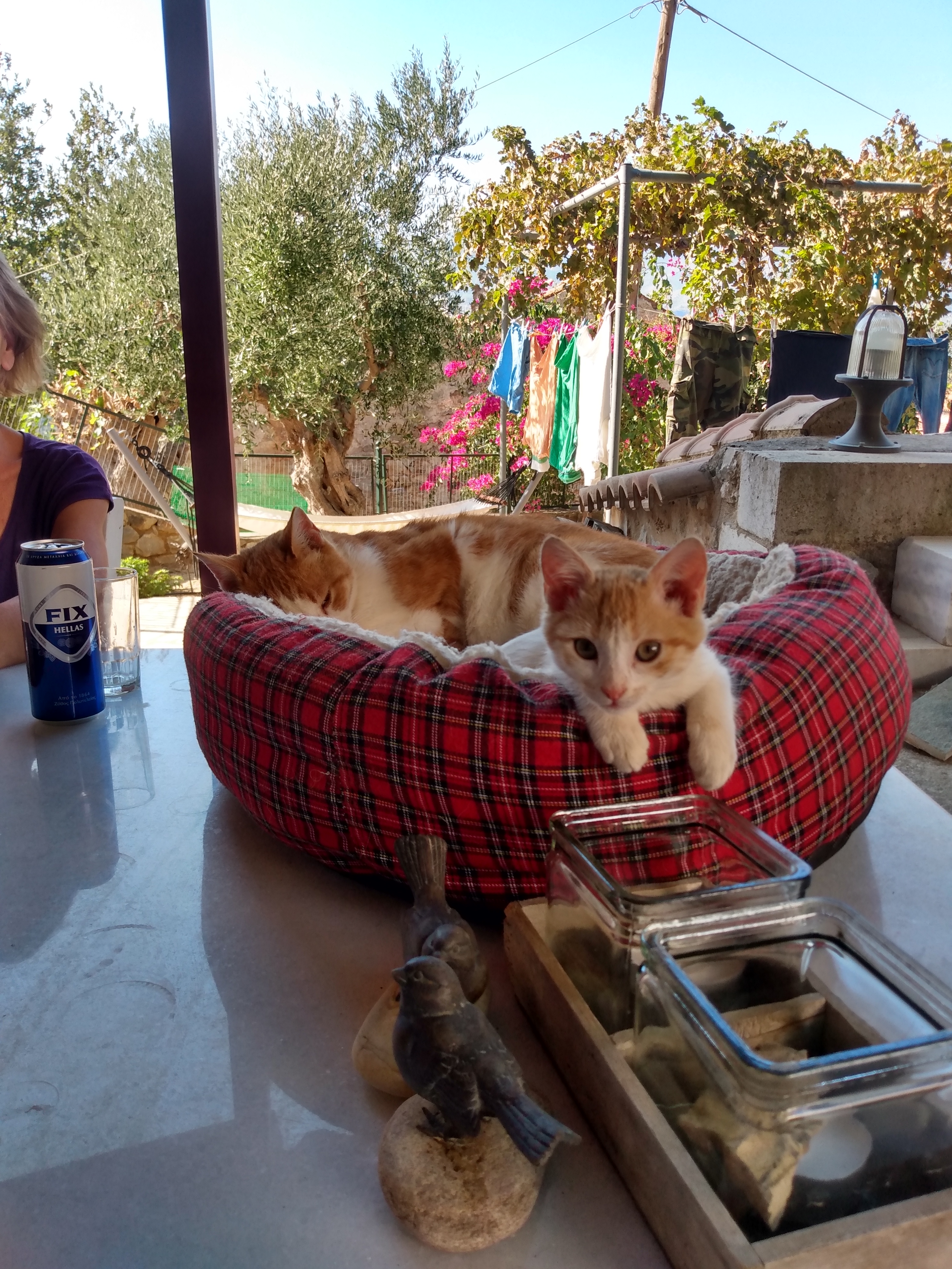 (de rode, omdat kokinos (κοκινος) rood betekent). De rest van de beestenbende in de tuin heeft totaal geen problemen met de nieuwe katten, zodat het een relaxt gebeuren blijft. Alleen eten geven is enig gedoe, doordat de kittens ook nog blikvoer krijgen wat alle honden en katten lekker vinden.