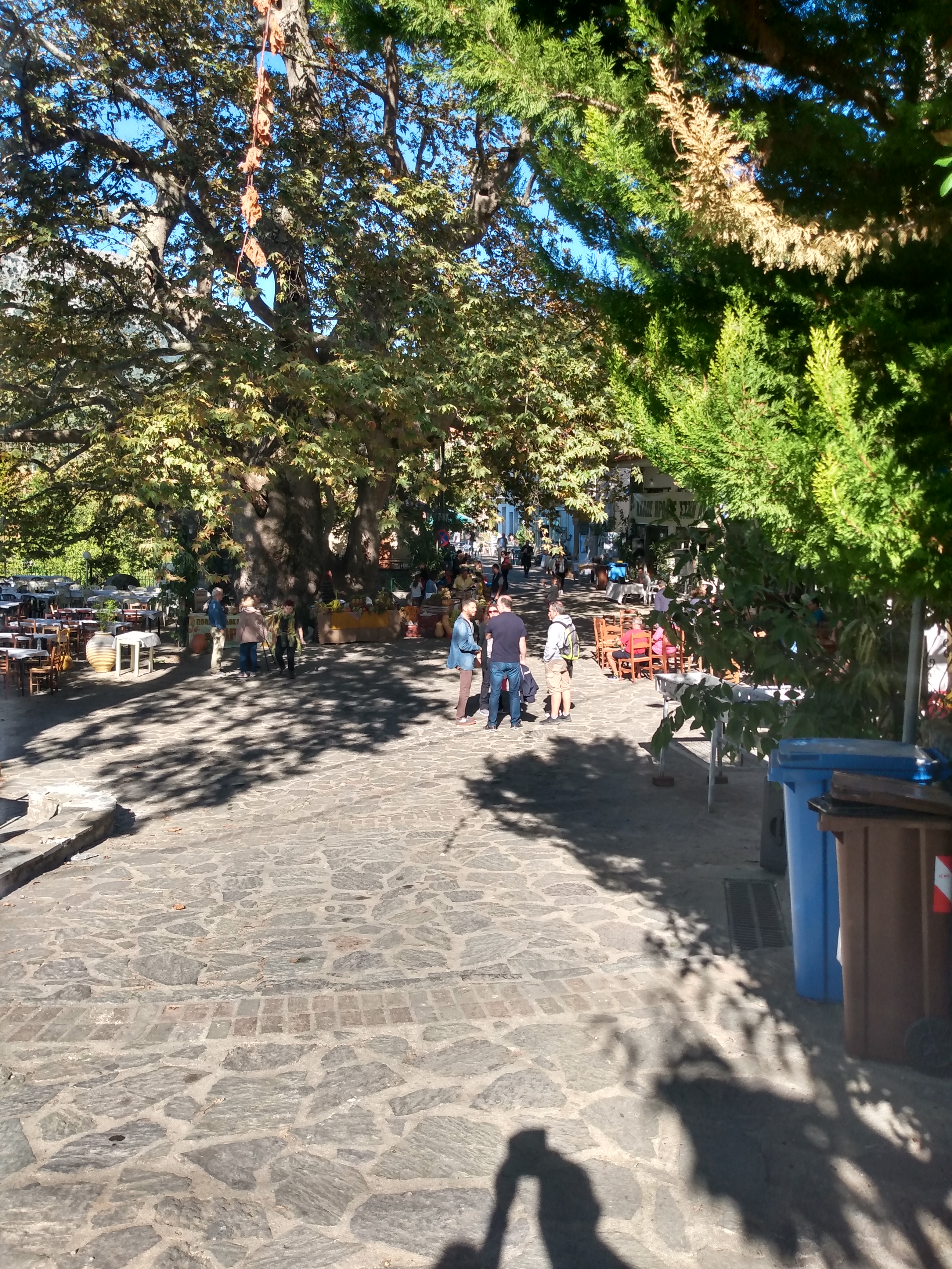 In het laatste weekend van oktober wordt het jaarlijkse kastanjefeest in Arna (een dorpje in de bergen, ongeveer 30 minuten bij ons vandaan) gehouden. De ontvangst is met een gratis glaasje tsipouro (griekse jenever) en gepofte kastanjes. Dit jaar zijn we weer eens gegaan, mede door het mooie weer. Er zijn allerlei stalletjes die kastanjes, appeltjes, tsipouro, gedroogde vijgen, etc. verkopen. Ook zijn er een paar winkeltjes die dan sieraden en kleine kunstwerkjes verkopen. Een gezellige sfeer en goed georganiseerd (bijvoorbeeld een parkeerplaats buiten het dorp met een gratis pendelbus).