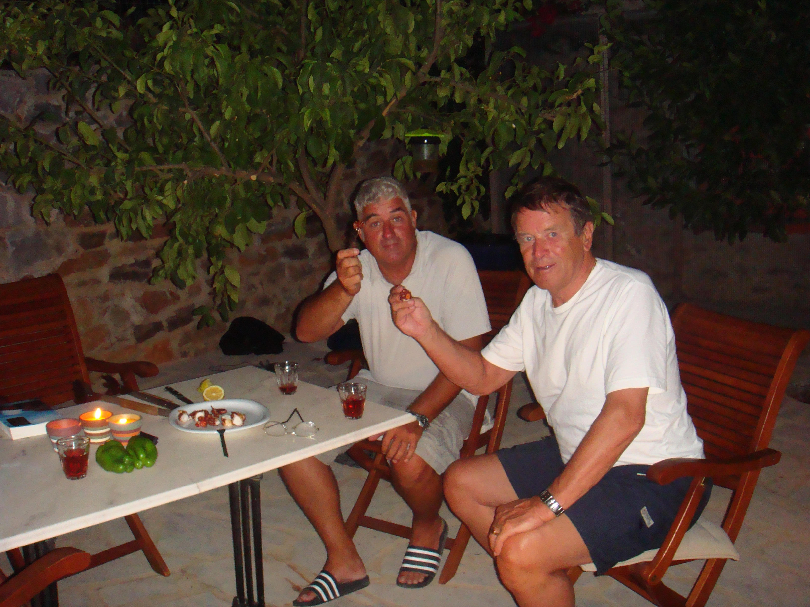 Dat was het motto in de week van 3 tot en met 10 oktober, toen Rob & Elly hier waren. Rob neemt dat letterlijk en is wat dat betreft een goede concurrent van de Reigers. We hebben die week een zeer druk programma gehad: Monemvasia, Mistras, Sparti, Mani-tour inclusief wandeling naar Cape Tennaro, zwemmen bij Marmari, wandeling naar de “schedeltjes” (een knekelhuisje bij een klooster in de buurt van Germa), markten van Gythio en Areopolis, grotten van Pyrgos Dhirou en al het daarbij behorende eten en drinken.