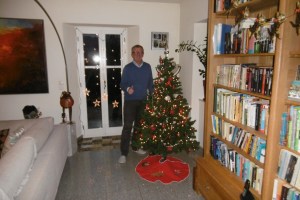 Vrachtwagens konden en mochten niet meer verder, veel auto’s reden met sneeuwkettingen en de snelweg werd iedere 10 minuten weer geveegd door sneeuwschuivers. Doordat onze auto een 4×4 is, ging het nog net zonder kettingen. Ook de terugweg duurde door de hevige sneeuwval aanmerkelijk langer. Bij thuiskomst werd Henk meteen aan het gebruikelijke werk gezet: de kerstboom opzetten en optuigen.