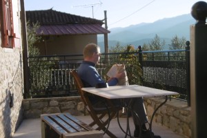 De dagen rond de Kerst waren verder prachtig, veel zon en weinig wind. Dus hebben we nog een aantal keren op het terras kunnen zitten. Vanaf het terras kan je de witte toppen van het Taygetosgebergte zien.