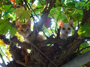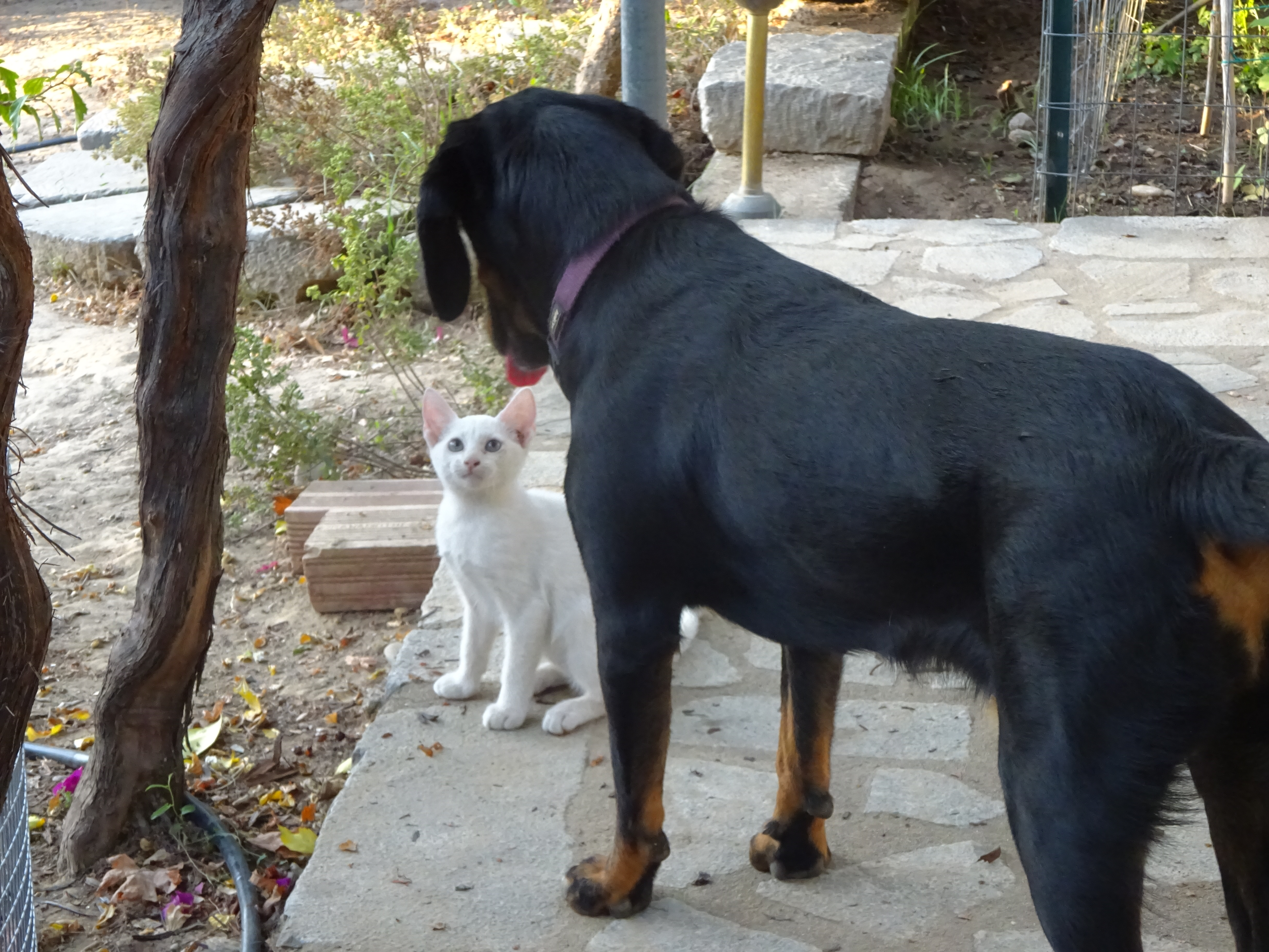 De puppies zijn trouwens erg makkelijk met de poezen.