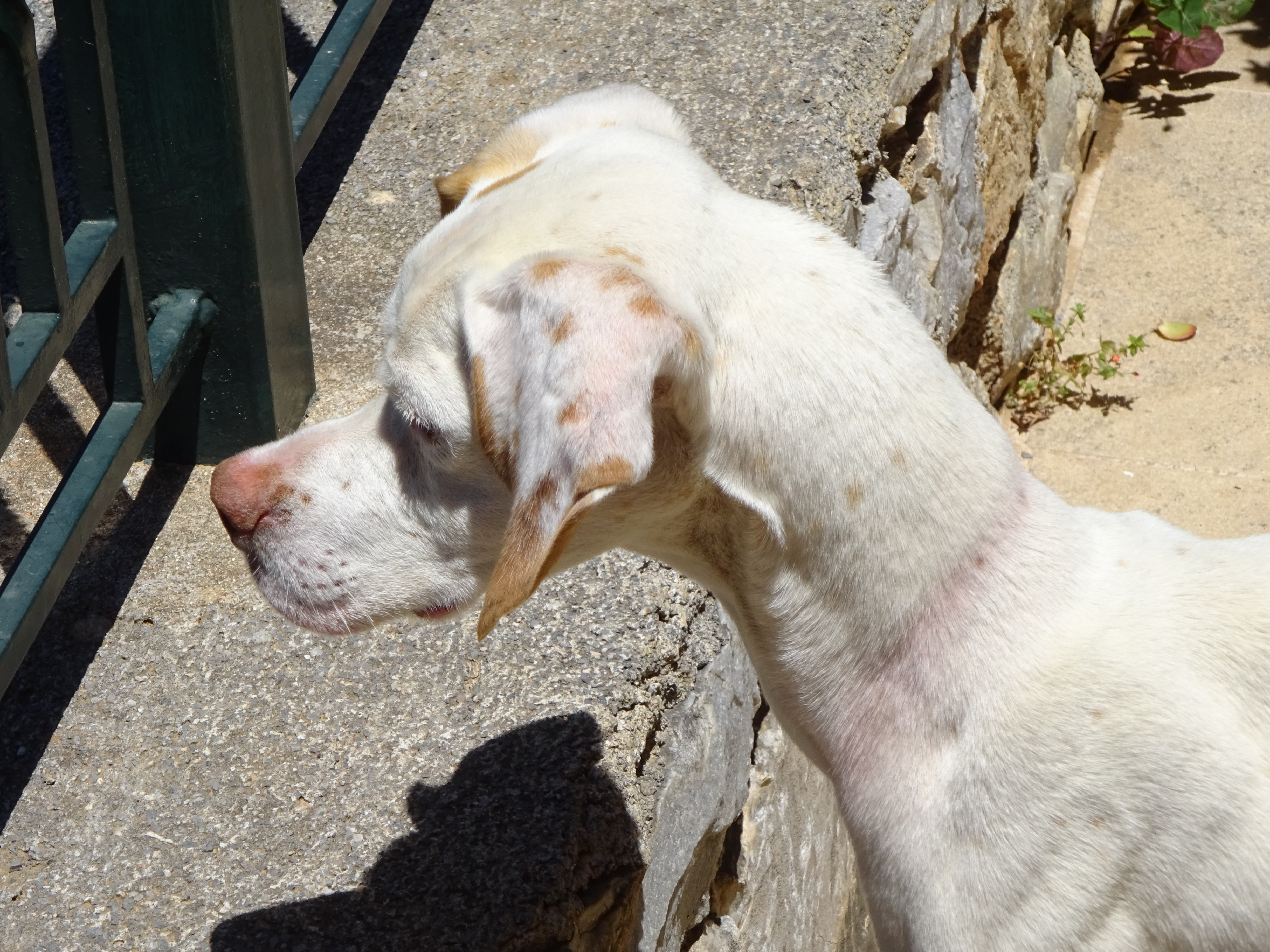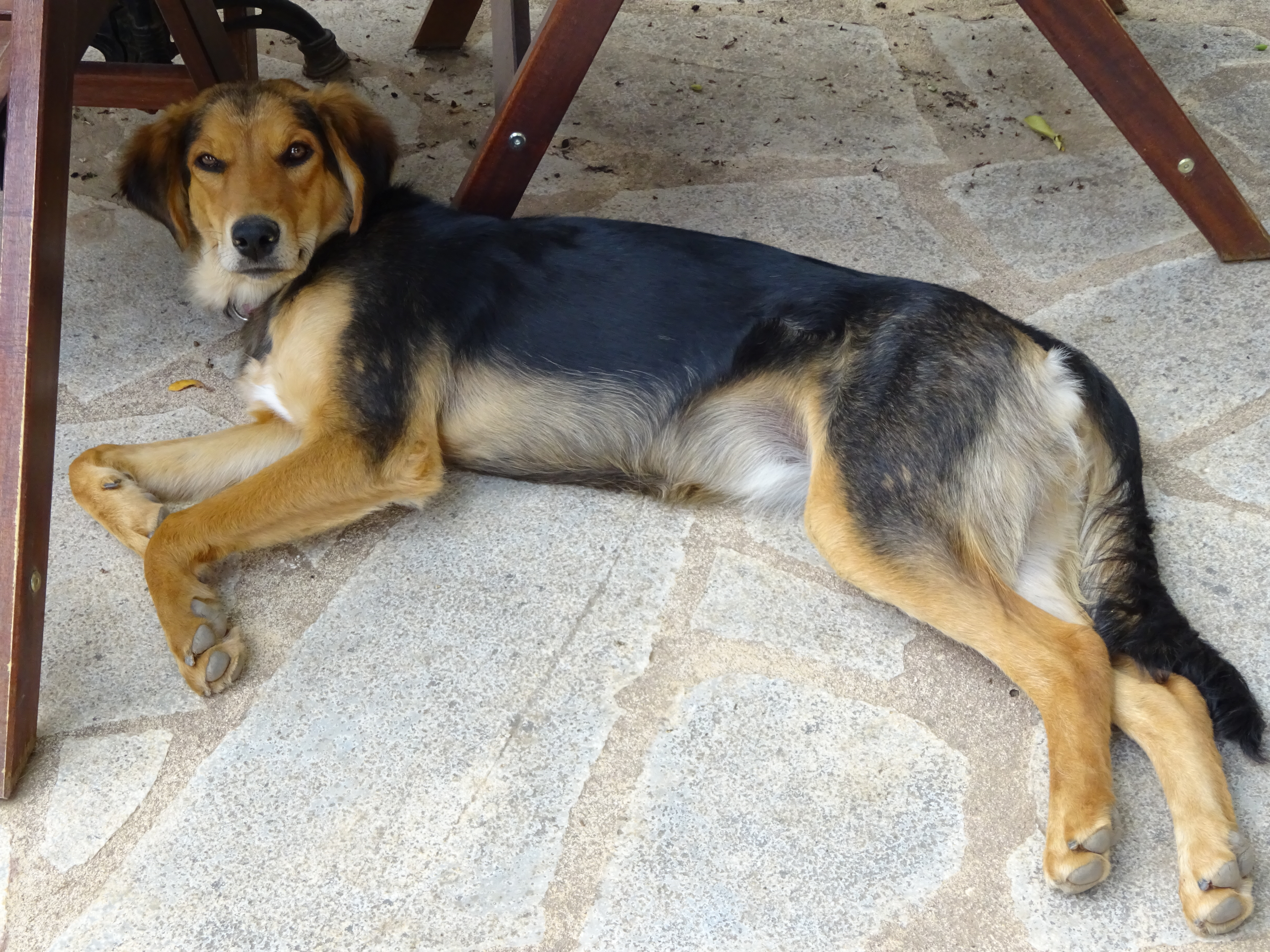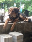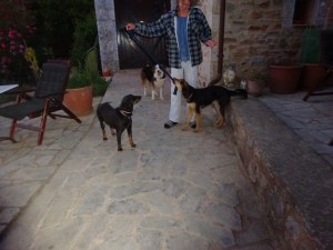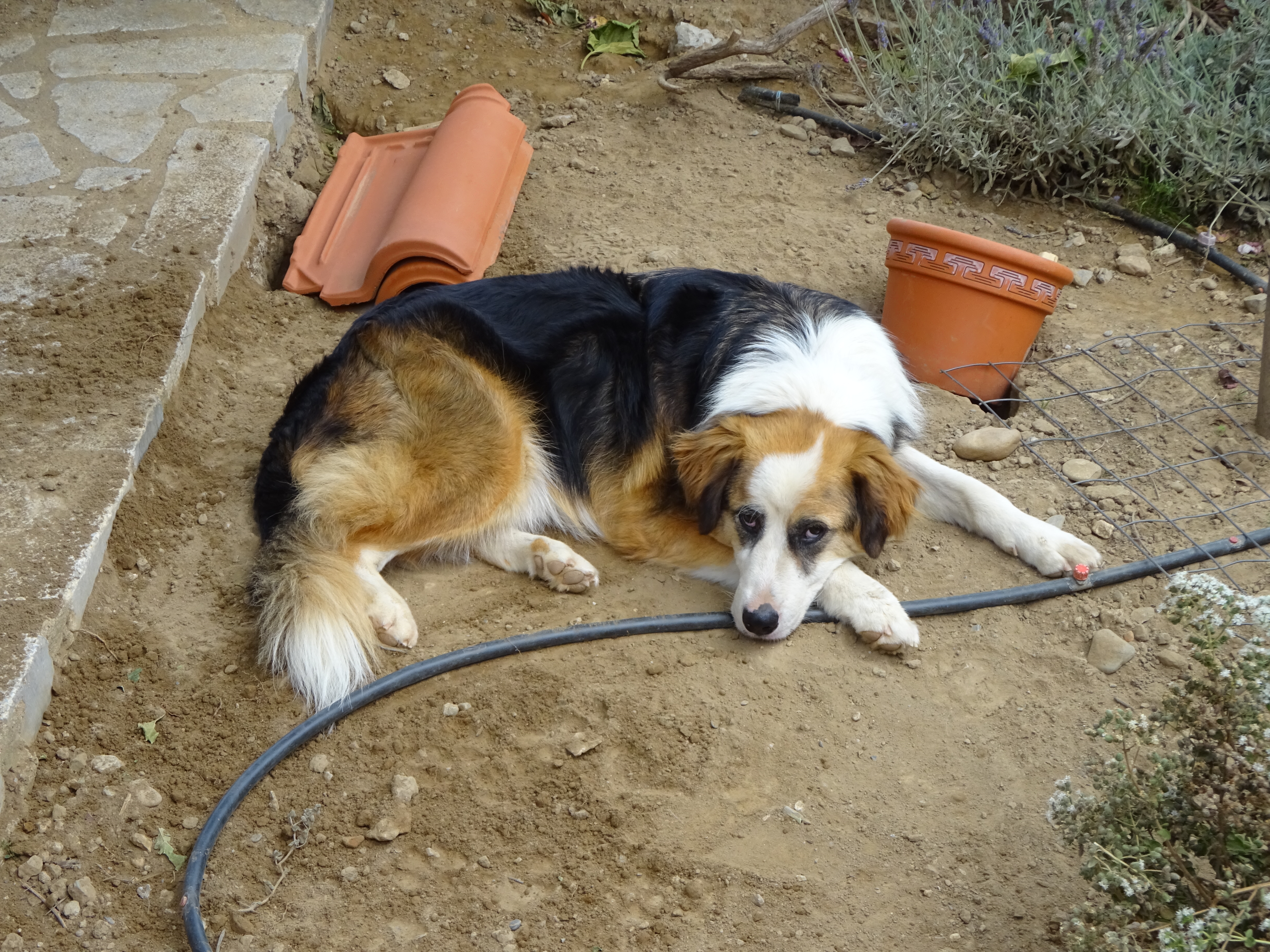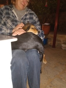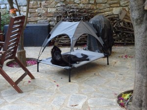 weet iedere nacht ten minste 2 spullen te vernielen. Dat kan zijn een tuinstoel, tuinslang, een emmer, de riem om mee te lopen, etc. Ons is verteld dat dit tijdelijk is (maar “in het licht der eeuwigheid is alles tijdelijk”), dus in de tussentijd moet ze ’s nachts en als we weg zijn in een crate/bench.