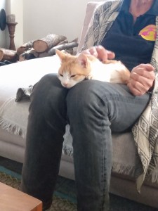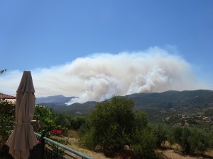 De open haard is ook al een keer aan geweest.We zitten nu ’s avonds buiten vanwege Lotta, de geopereerde hond met een kap om haar hoofd, die dan een tijdje bij ons mag liggen. De buitendeur staat dan open en het was die avond fris. Oplossing is de open haard aandoen. Overdag nog telkens 24 graden en ’s nachts 12.