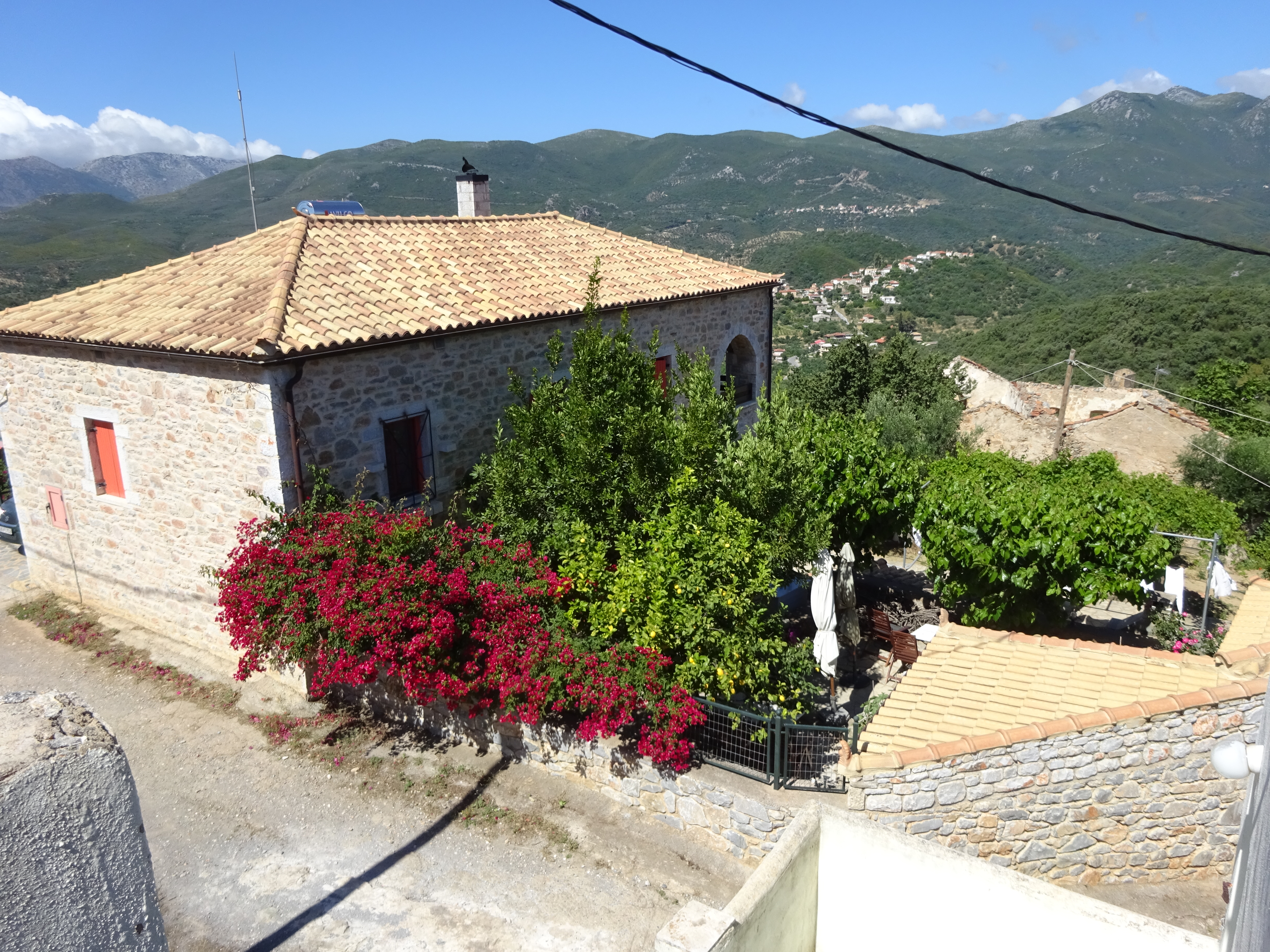 De tuin is winterklaar, dat wil zeggen dat de moerbei bomen gesnoeid zijn door een van de dorpsbewoners om de bladeren te kunnen gebruiken voor zijn beesten en dat we de druif ook gesnoeid hebben. Dat scheelt enorm veel licht in de tuin.