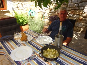 Slechts op een van de grondstukken waar we jaarlijks plukken waren er olijven. In drie dagen tijd hebben we, samen met hulp van de buren, 426 kilo olijven verzameld en naar de pers gebracht. De opbrengst was 62 kilo olie, dus 6,9 kilo olijven voor 1 kilo olie. Daarna hebben we, zoals ieder jaar, de dikkere takken verzameld als open haard hout. Bij elkaar ongeveer 1 kuub.