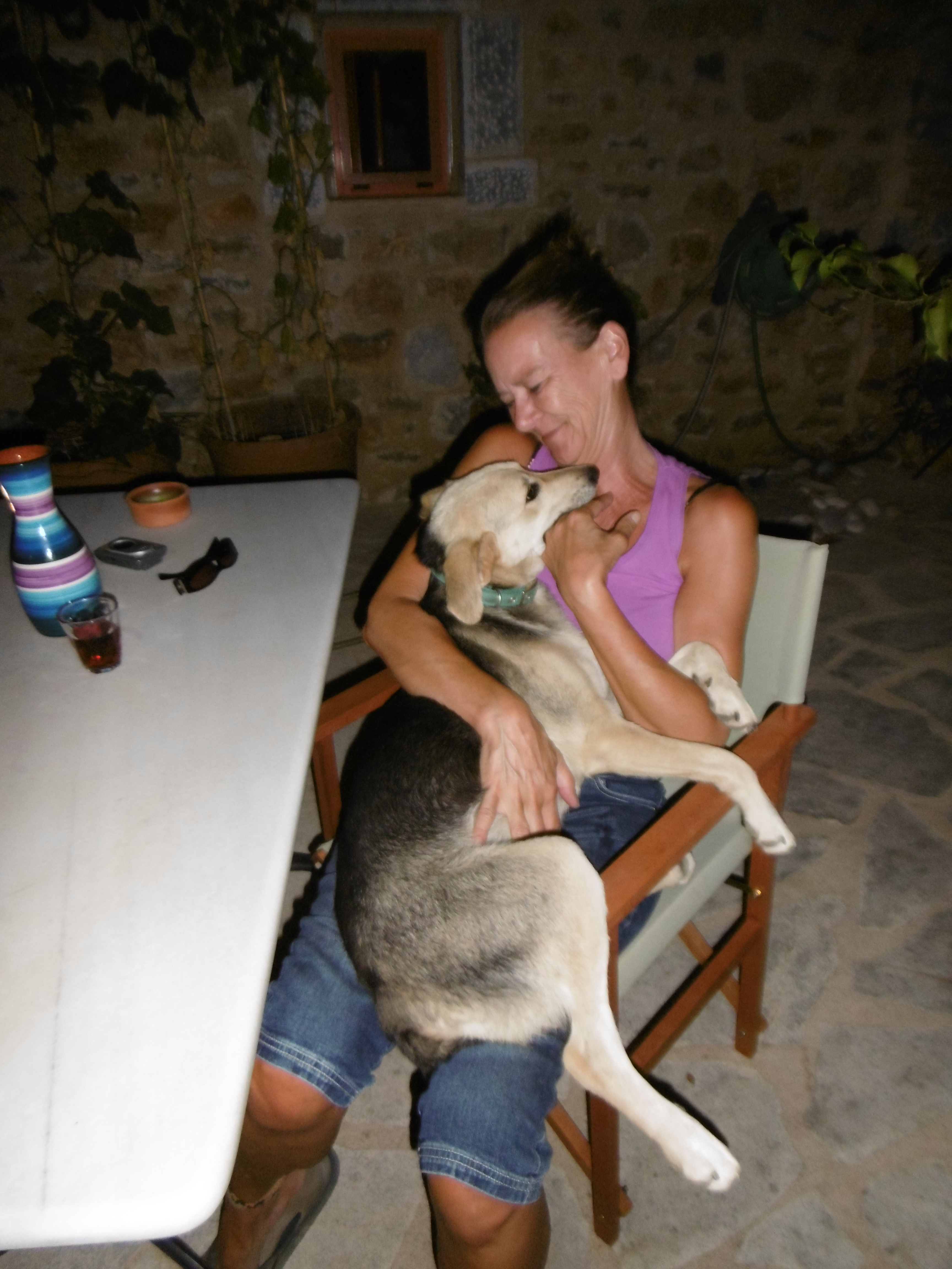In de opvoeding van Souri zijn we weer een stapje verder. ’s Avonds mag ze zelf de poort uit. Ze gaat dan een uurtje met buurhond Vangelis spelen en soms op stap. Als Vangelis er niet is, dan is ze ook snel terug. We zijn er inmiddels achter dat het ras Griekse schaapshond (ze is half Griekse schaapshond en half Pointer) een soort van Oost-Indische doofheid kent, alleen luisteren als zij dat wil. Iedereen bevestigt dat overigens. Het is dus een nogal eigenzinnig ras (door Wikipedia omschreven als “independent thinker”). Het gaat wel steeds beter, maar er zijn momenten ….. Nu het dagelijks boven de 30 graden is, heeft ze geen zin om tussen de middag uitgelaten te worden. De keren dat we een poging doen, ligt ze ons aan te kijken alsof we niet helemaal goed bij ons hoofd zijn. Op zich een goede indicatie van hoe warm het is.