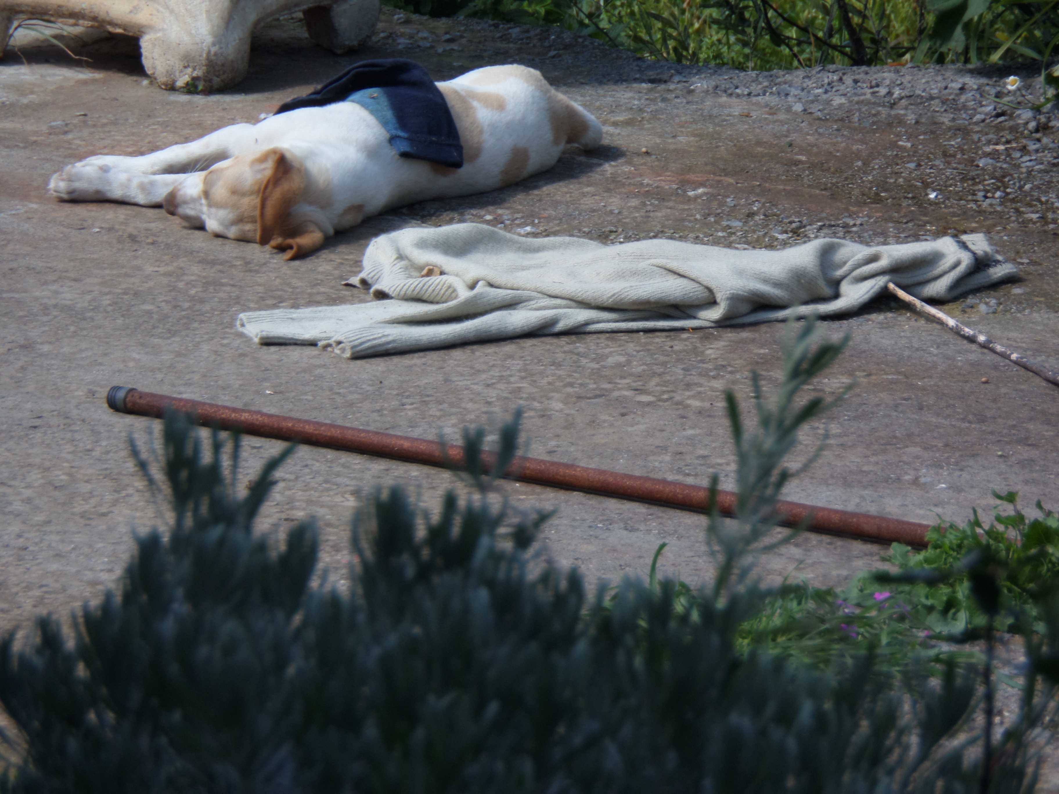 Wij hebben weliswaar geen hennepteelt, maar ook onze moestuin gaat weer goed. Artichokken, radijs, wortels en sugar snaps. En een eigen streng knoflook! Laatst heeft de droge harde wind (6 Bft) ervoor gezorgd dat een deel van de bladeren van de moerbei bomen en wat andere planten eruit zagen alsof ze deels verbrand zijn. Het is trouwens een zeer winderig voorjaar. Veel dagen met tenminste 4 Bft uit het westen. In de tussenliggende dagen van minder wind heeft Diana het “stoelenverf project” afgerond, de buitenstoeltjes zijn nu grijs.