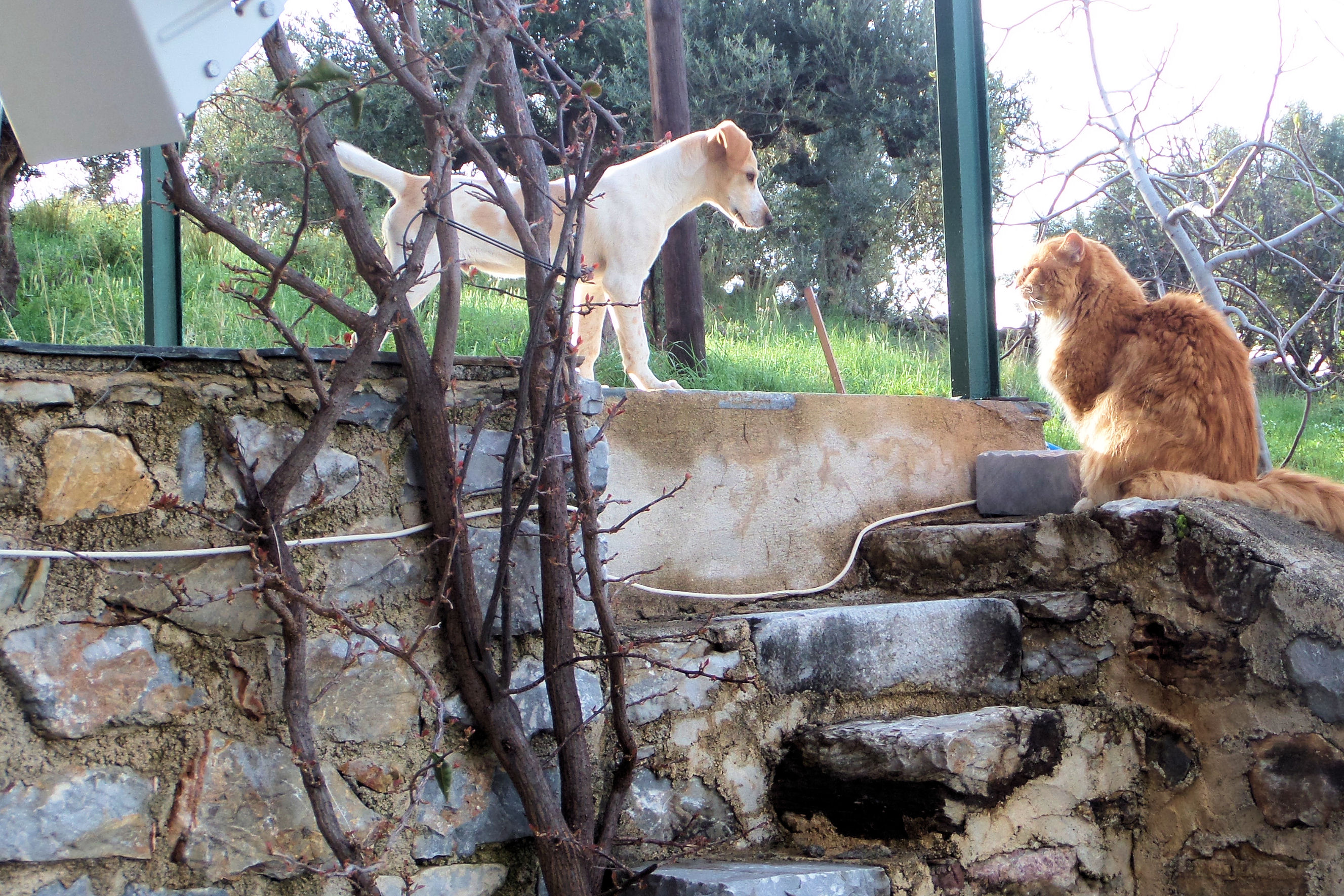 Inmiddels is de lente aangebroken, genoeg dagen waarop het tegen de 20 graden of meer is, schildpadden zijn weer aan de wandel, de eerste slang is gesignaleerd, de katten en honden hebben teken op en in hun vacht zitten, de grasmaaiers maken weer herrie, de olijfpersen hun laatste productiedagen hebben, etc. In februari heeft het af en toe enorm geregend en gewaaid.