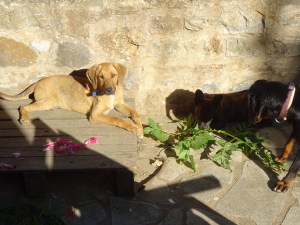 Inmiddels hebben we weer twee puppies in de tuin rondlopen. Deze heten Frankie en Alexia.
